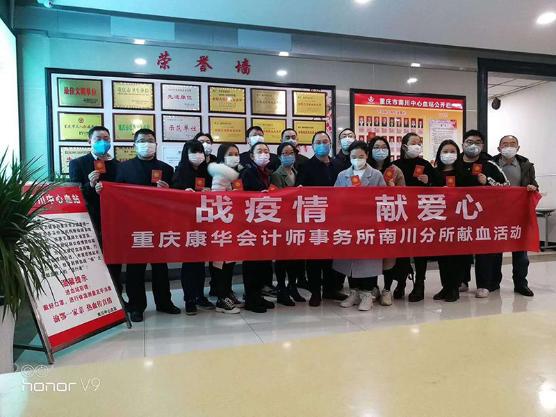 此外,3月9日上午,重庆康华会计师事务所南川分所全体党员和职工,在南川区中心血站开展“战疫情·献爱心”献血活动,为快速打赢疫情战役尽一份力。