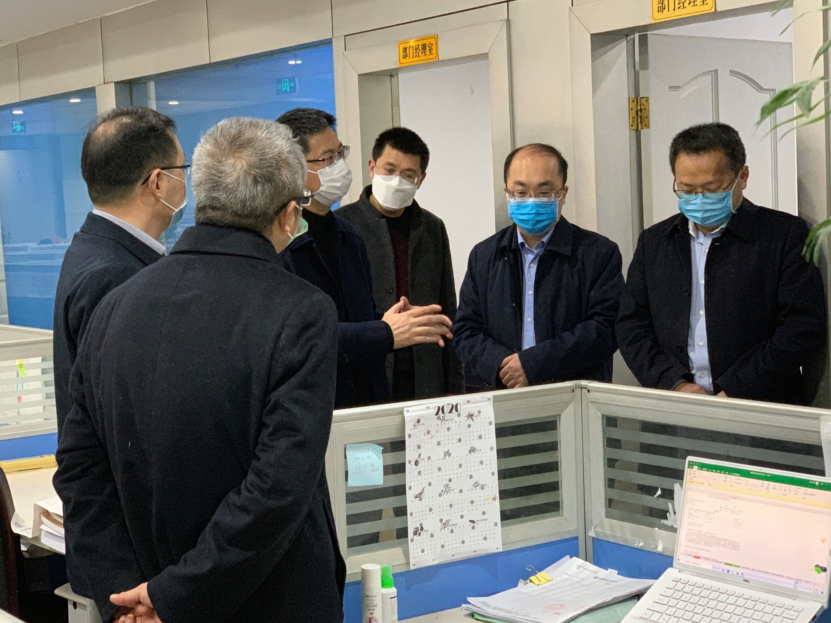 重庆市委常委、万州区委书记莫恭明(左三)深入事务所检查疫情防控和安全防护工作,与主要负责人了解事务所复工复产情况,协调解决发展中面临的困难和问题。