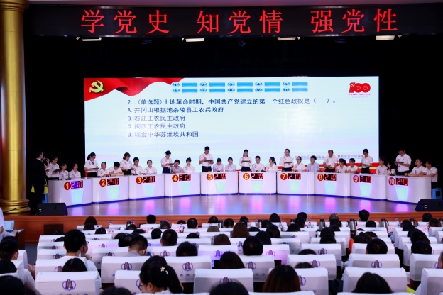 此次竞赛通过步步为赢、齐心协力、眼疾手快、挑战自我等环节的激烈角逐,使得比赛现场气氛紧张热烈,台上参赛选手沉着应战、积极答题,台下观众加油鼓劲、掌声连连。同时为了丰富竞赛形式,还安排了“看视频、听党课、学党史”环节,让党员同志们在寓教于乐中掌握更多党史知识,为本次知识竞赛增添了活力,真正让党史知识入脑入心。